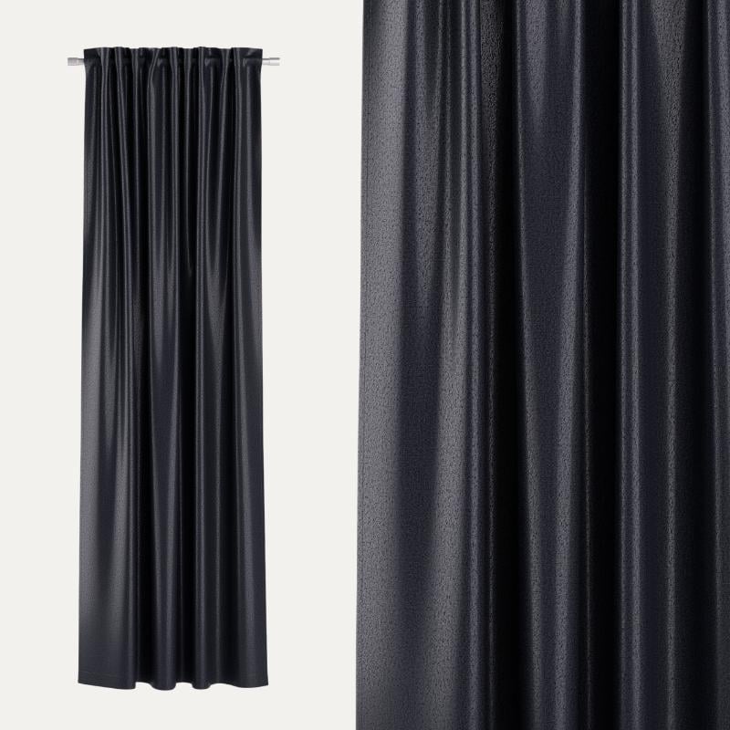 Die angegebene Breite bezieht sich immer auf die tatsächliche Stoffbreite des Vorhangs. Wird der Vorhang aufgehangen, reduziert sich die Breite des Stoffes aufgrund des Faltenwurfs. Daher sollte die Stoffbreite größer gewählt werden als die Breite des Fensters.