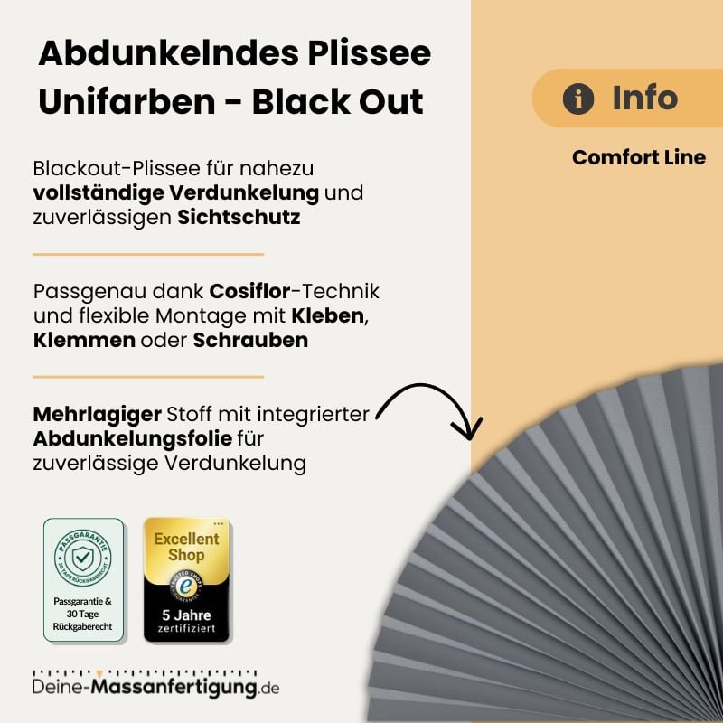 Abdunkelndes Plissee (Black Out) – Comfort Line