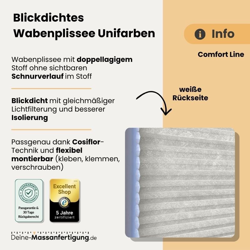 Blickdichtes Wabenplissee Comfort Line Unifarben – Duo-Charme & Effizienz
