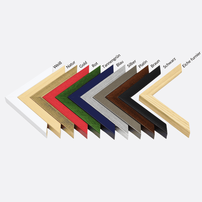 Unsere Rahmen sind aus HolzAluminium oder Kunststoff. Ebenso haben wir rahmenlose Bilderrahmen. Hierbei besteht die Vorderseite aus einer Glasplatte und einer MDF-Rückwand, die mit Klemmfedern zusammengehalten werden.