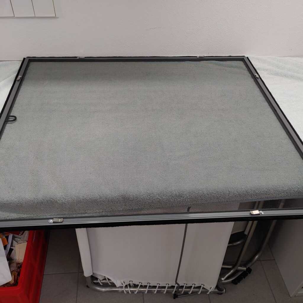 2. Kontrolle auf Beschädigungen: Prüfen Sie den Insektenschutz regelmäßig auf Risse oder andere Beschädigungen. Diese sollten sofort repariert werden, um sicherzustellen, dass der Schutz seine Funktion nicht verliert. Hier können Sie ein bei groben Beschädigungen ein neues Gewebe bestellen.