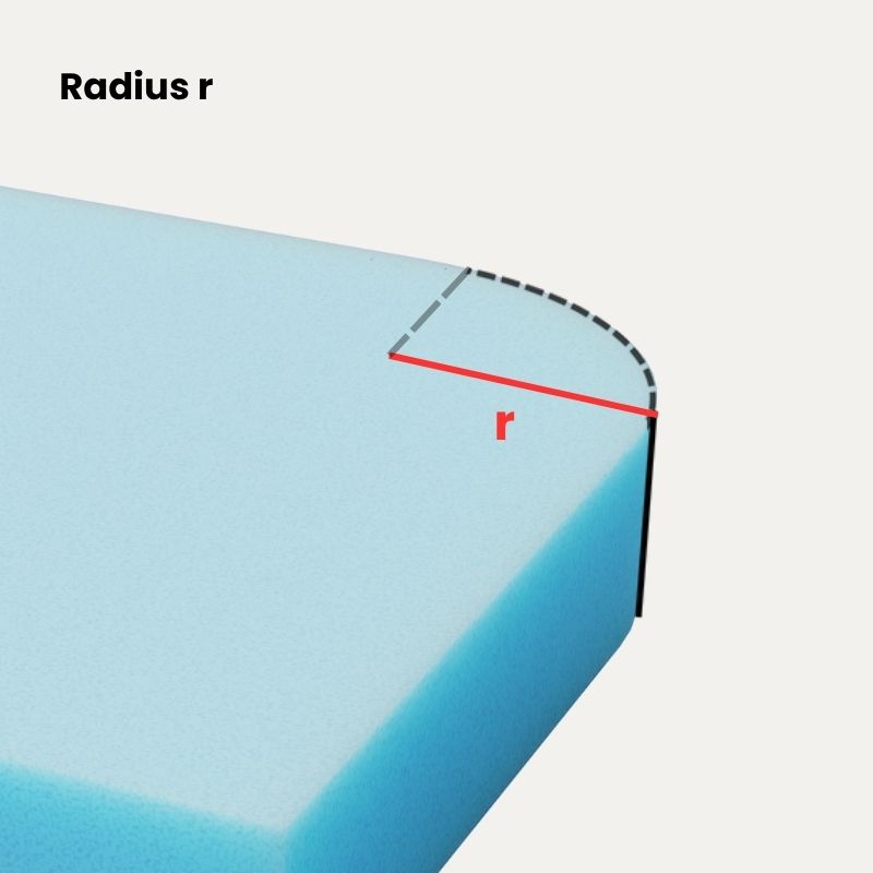 Schaumstoff-Zuschnitt – Rechteck mit zwei abgerundeten Ecken