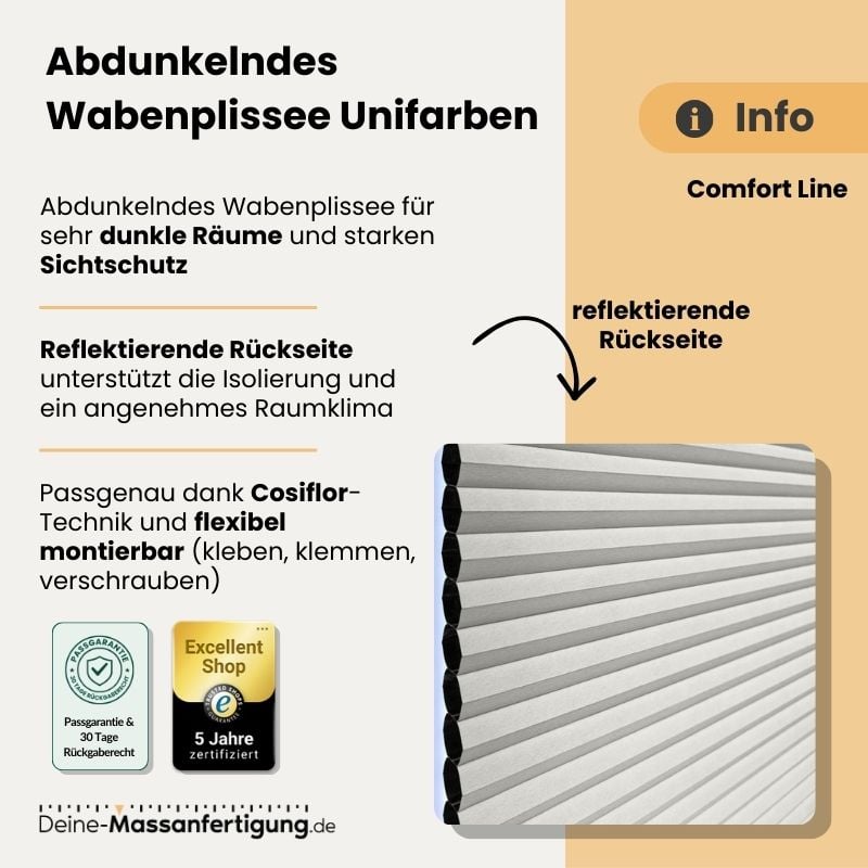 Abdunkelndes Wabenplissee Comfort Line Unifarben – Maximale Dunkelheit & Isolierung